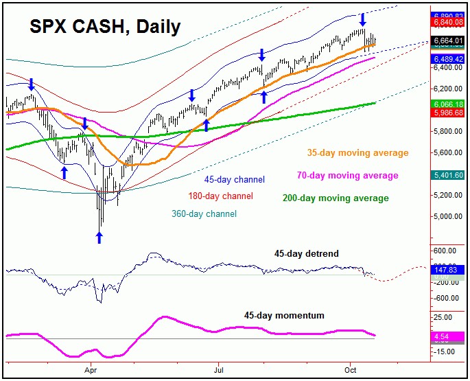 From my 7/15/25 article: "mentioned back in June, the combination of these (180/360-day) waves were seen as pushing higher, with the bigger 360-day component ideally moving up into early next year. In terms of price, the average rallies with this 360-day cycle have been some 40% from trough- to-peak, which suggests the potential for a push up to the 6800 SPX CASH figure (or higher) before this wave tops."