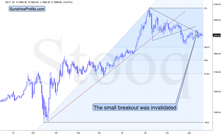 Gold, mining stocks, and the USD Index have not been doing much recently. However, yesterday, this “inactivity” took quite a decisive shape, and unfortunately, things are not looking good for gold.