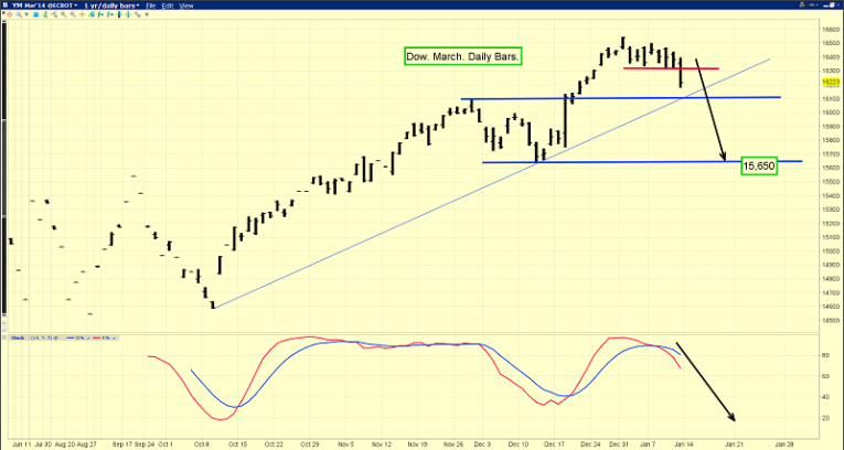 My stokeillator (14,7,7 Stochastics series) at the bottom of that Dow chart is flashing a sell signal.
