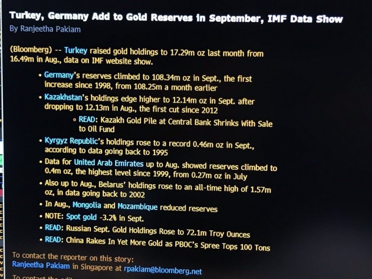 ◆ Central bank gold reserves are normally reported on in the financial media but the German gold purchase has only been covered on the Bloomberg terminal (see above)