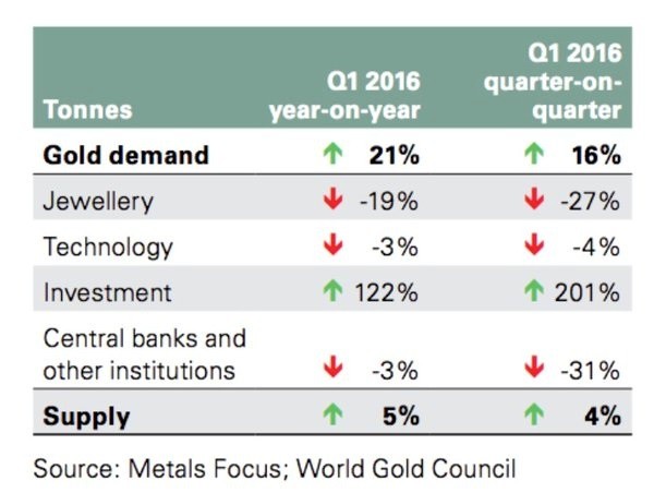 Global Gold Investment Demand Surges Record 122% In Quarter 1, 2016