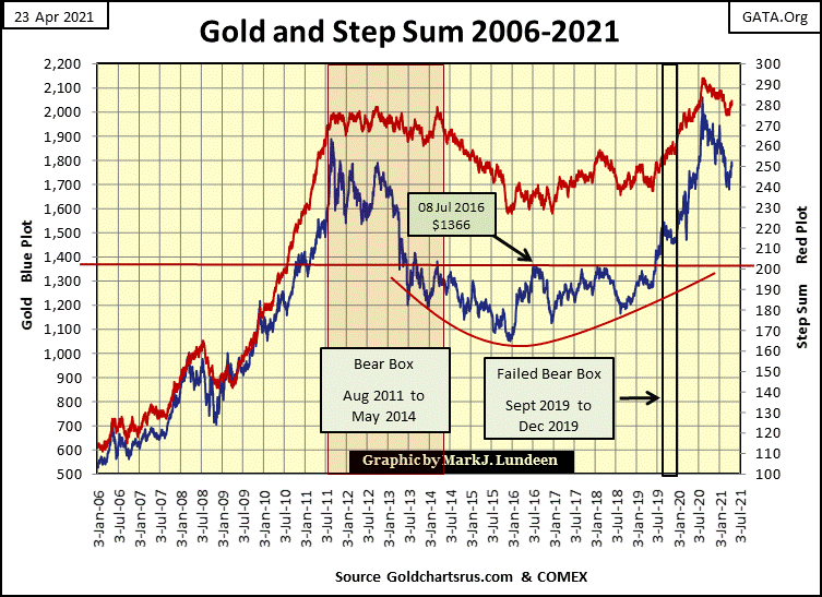 In gold’s step sum table below, gold on Wednesday, April 21st, closed with a 15 count of +7, making gold overbought. The bears took gold’s 15 count down to a +3 by Friday’s close. Apparently, gold’s break out moment hasn’t stated just yet.