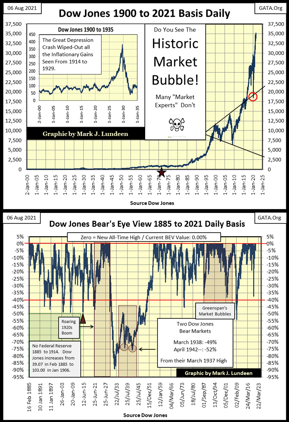 This week closed with the Dow Jones sitting on a new BEV Zero (new all-time high of 35,208), #37 since last November. I have nothing to say except Go Bulls Go! What else is there to say? Yes, the market’s valuations are being inflated by the FOMC, but who really cares as long as the Dow Jones continues going up?
