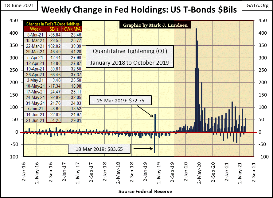 It’s only going to get worse. This week (chart below) the FOMC has “injected” an additional $54.20 billion dollars of “liquidity” into the financial system. This is far from the plus $400 billion they “injected” into the financial markets in a single week April 2020 to reflate market valuations. But come the next crisis, expect the pending Not QE#5 to exceed the extremes seen in their Not QE#4 seen below.