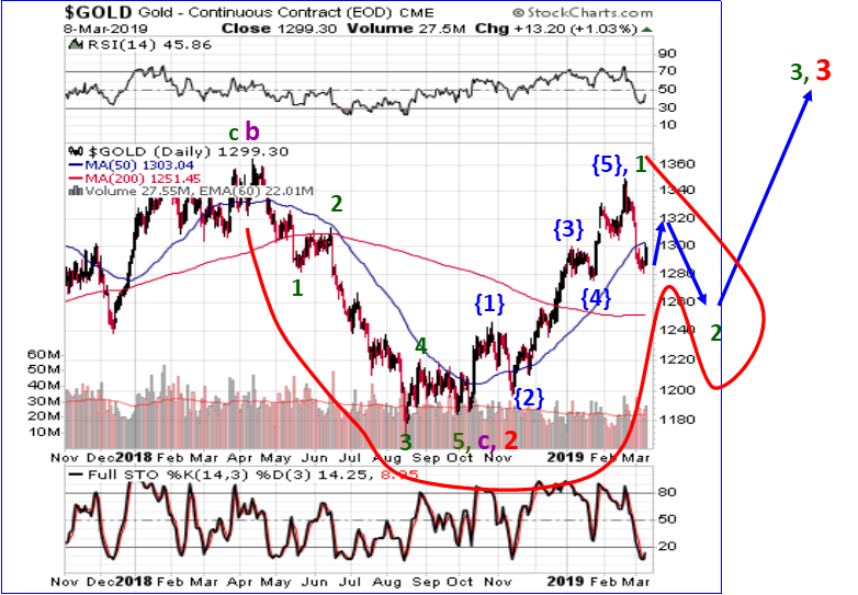 In our February 22nd, 2019 article “A Corrective Decline Approaching within Gold’s Long-term Rising Trend,” we noted that Gold was due for a correction soon. That decline started immediately, taking Gold down almost 60 points to a low of 1,280 on March 7th, 2019. We noted that Gold had completed wave 1-up of a new five wave Bull market, and was due to start wave 2-down. The decline the past few weeks completed the first subwave a-down of 2-down. Friday, March 8th’s rally was likely part of subwave b-up of 2-down. Once finished there should be one more declining trend c-down to finish wave 2-down. Then a powerful wave 3-up will take Gold sharply higher.