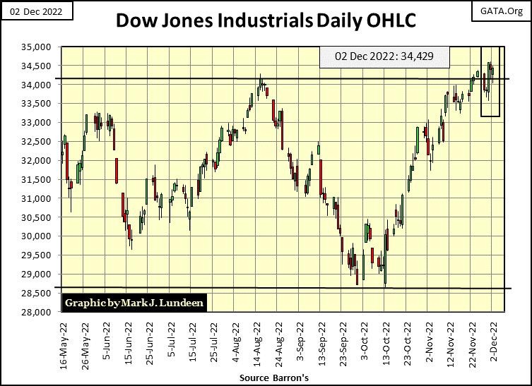 On its first day of trading, the XAU closed at 107.06. At week’s end the XAU closed at 124.40, for a thirty-nine-year gain of $17.34. String beans at the grocery story have increased in price more than that since 1983. Not much of a recommendation for mining shares. Except in December 2022, every sector in the stock market has a problem the mining shares don’t; they’ve been greatly leveraged with debt and derivatives. In the coming economic unpleasantness, there will be panic in the financial markets because of counterparty default due to the leverage other market sectors now have; panic I believe will pass-over precious metal assets.