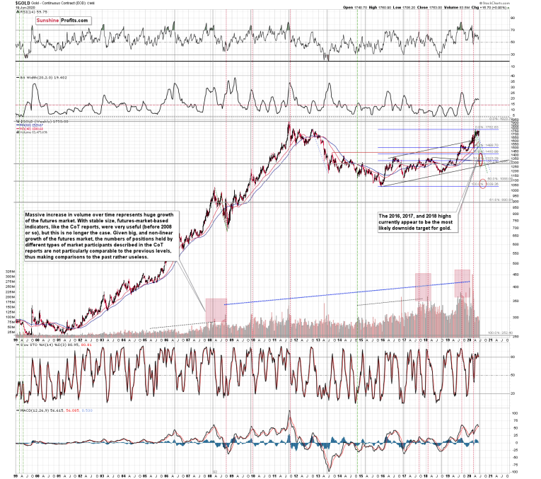 Naturally, the long-term outlook remains extremely bullish, especially given the possibility of seeing a cup-and-handle formation in gold. The 2011 – now price movement could indeed be the “cup”. Generally, the bigger, more symmetrical, and rounder the “cup” is, the more profound and more bullish the implications are.