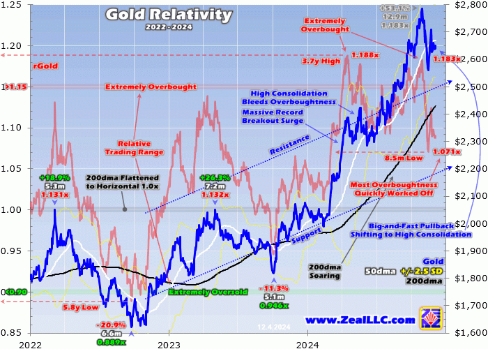 The bottom line is gold’s monster upleg remains alive and well. With extremely-overbought technicals and excessively-bullish speculator gold-futures positioning, gold had been overdue for a selloff. While it started before Election Day, Trump winning catalyzed it. Traders figured that meant the Fed’s rate-cut trajectory had really moderated, resulting in a stronger US dollar which triggered big gold-futures selling.