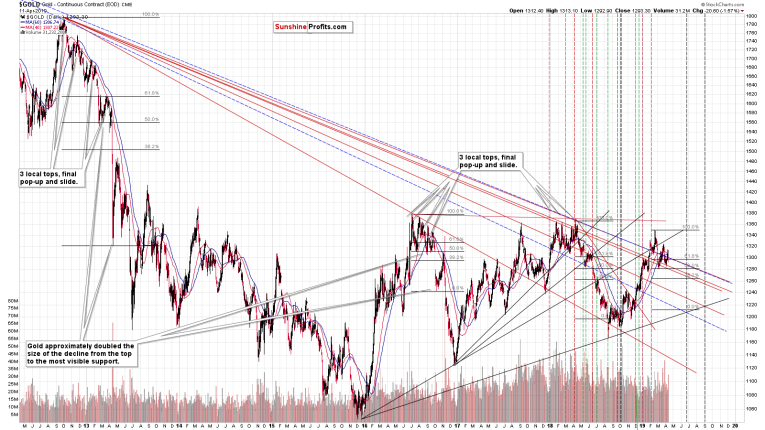 Of course, there’s also the rising support line that’s based on the August and November 2018 lows and it points to $1,250 as the likely near-term target.