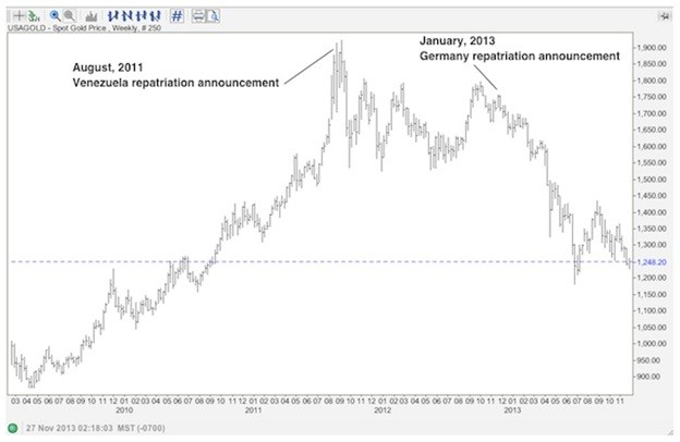There is quite a bit of speculation as to who might be benefiting from gold’s seemingly organized retreat. Some say the price has been driven down to fulfill Germany’s repatriation at lower prices. Then there are those who believe that others could be attempting get ahead of Germany knowing that physical availability is limited. In keeping with this line of thinking, there have been persistent rumors of future Swiss, Dutch and Mexican official repatriations in the works.