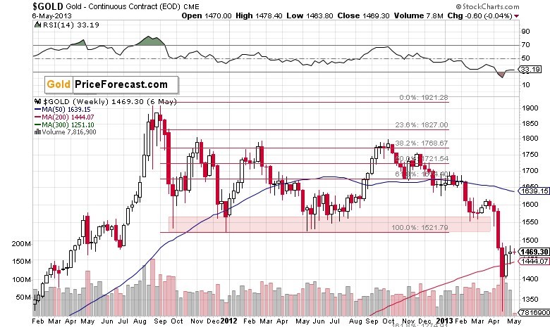 Does this rally weaken the bearish case for the following months? Not at all. Please remember that the entire 2012-2013 pre-slide trading pattern was back-and-forth movement within a rather broad trading range. There were four distinct tops then – perhaps we’re seeing exactly the same thing right now and this rally will take gold to its fourth – and final – top.