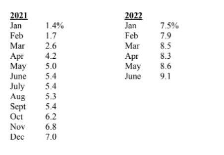 Getting back to real rates, a 2.9% nominal yield minus the above 9.1% inflation rate = negative 6.21% real yields.