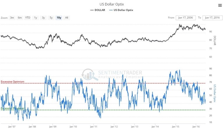 While the latest US dollar optix chart shows readings still in middling ground, they are on the bullish side of middling.