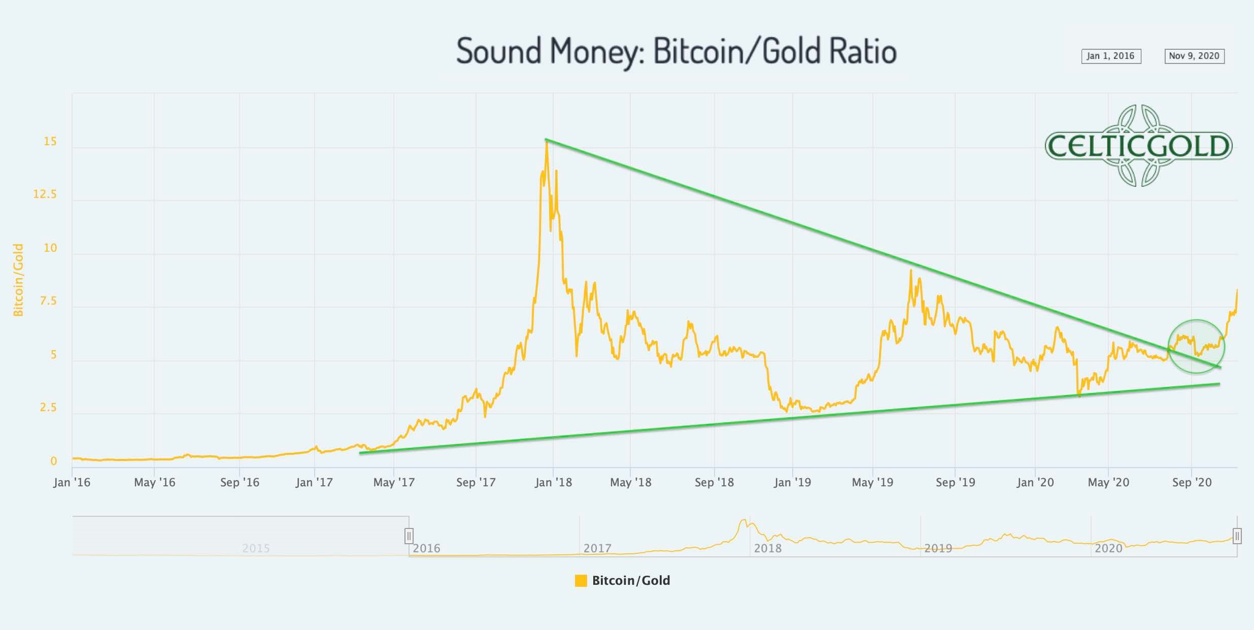 Sound Money Bitcoin/Gold-Ratio as of November 9th, 2020. Source: Chaia