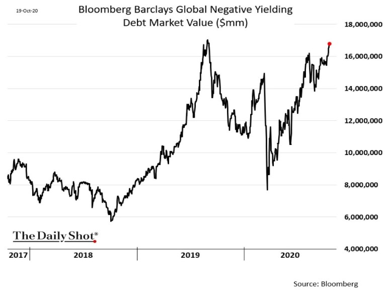 Global negative yielding debt market. Source: The Daily Shot and Bloomberg, 19 October 2020