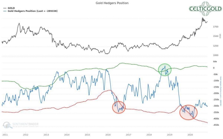 Commitments of Traders for Gold as of November 3rd, 2020. Source: Sentimentrader