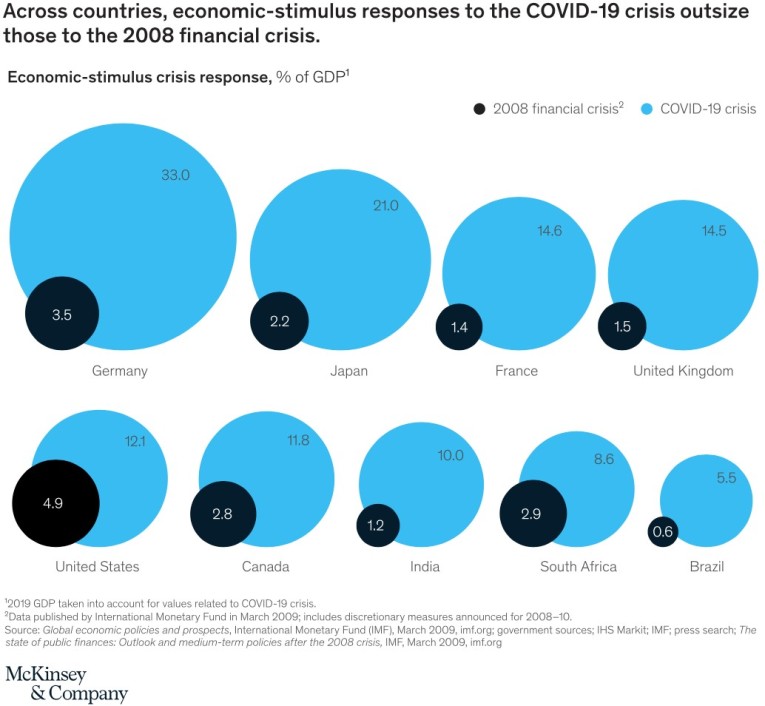 Economic Stimulus 2020 outsize the 2008 financial crisis 101120, Source McKinsey & Company 2020