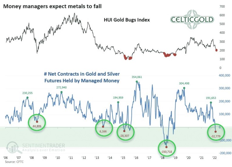 Gold & Silver future contracts held by managed money as of July 25th, 2022. Source: Sentimentrader