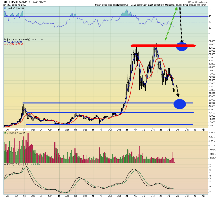 Double-click to enlarge this bitcoin “buy zones of champions” chart. Most gold bugs missed the bitcoin surge to $60,000 and others failed to follow me and sell into that key area.