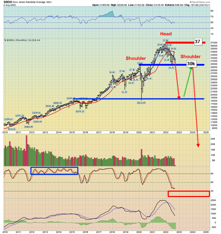 The monthly Dow chart. Is the H&S top realistic?