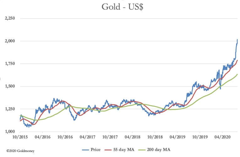 Measured in dollars, the current bull market for gold started in December 2015, since when the price in dollars has almost doubled. Other than the odd headline when gold exceeded its previous September 2011 high of $1920, only gold bugs seem to be excited. But in our modern macroeconomic world of government-issued currencies, which has moved on from the days when gold operated as a monetary standard, it is viewed as an anachronism; a pet rock, as Jason Zweig of the Wall Street Journal called it in 2015, only a few months before this bull market commenced.