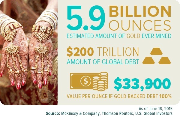 More surprising is that if gold backed total global debt 100 percent, it would be valued at $33,900 per ounce.