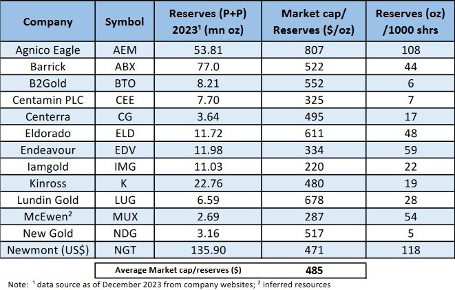 In the interim, the acquisition of ounces on Bay Street is a cheaper option given the long lead times in building a mine which can take up to 10 years from first discovery to first gold pour. Capital requirements today are huge with projects requiring time-consuming permits and half a billion or billions to build. We calculate the market cap per reserves in the ground at less than $500/oz thus it is cheaper to buy than explore. The problem? There are few candidates around.