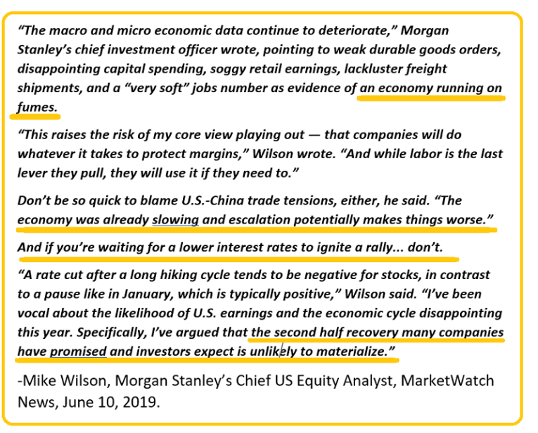 Mike Wilson does a near-perfect job of outlining what I believe is in store for H2 of 2019.
