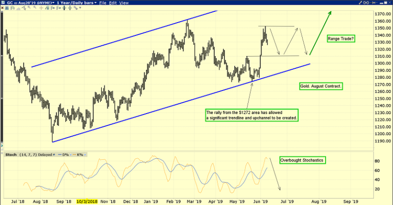 This is the daily gold chart. The most impressive event in the rally from the $1272 area is the creation of a new up channel!