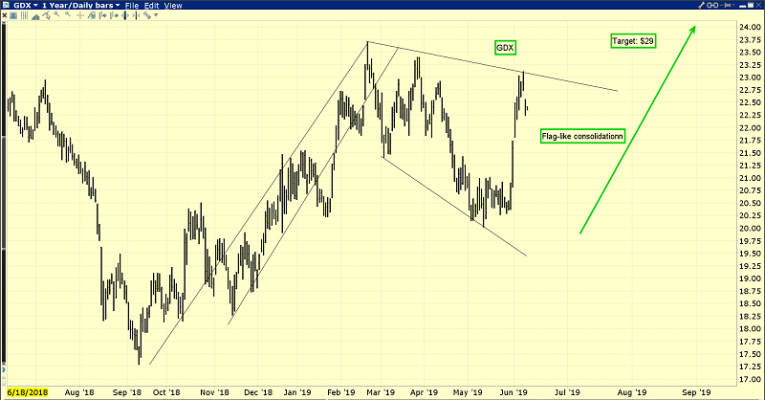 That’s a second look at the GDX chart.  Any consolidation that occurs now will build a H&S bull continuation pattern as well as more flag-like price action.