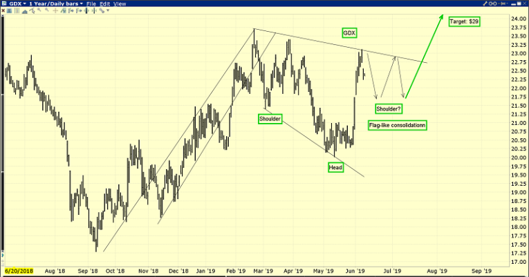That’s a second look at the GDX chart. Any consolidation that occurs now will build a H&S bull continuation pattern as well as more flag-like price action.