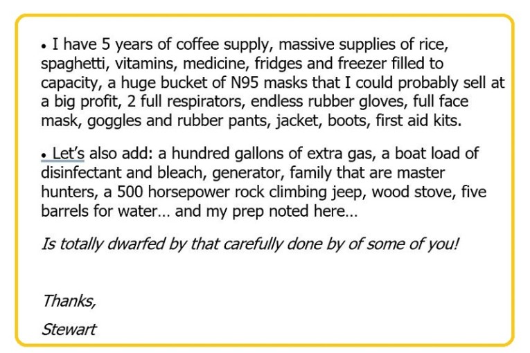 Horrifically, I’ve predicted that before the Corona war reaches its crescendo, America will look much worse than Italy does now.I stand firmly by that prediction.