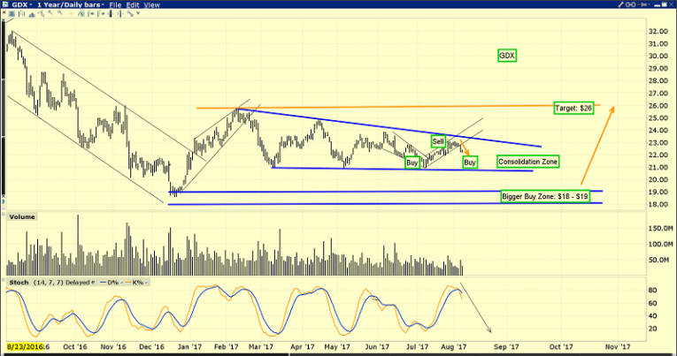 I’m quite an aggressive GDX buyer in the $22 - $18 area, and a seller (of some) in the $23 area.