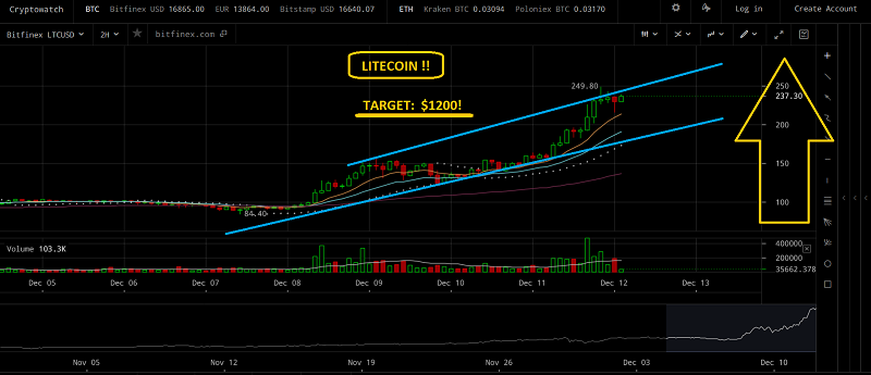 Even after this mighty blast higher, the $250 area for Litecoin should probably not be viewed as anything but a minor pitstop on a rocket ride to $1200.