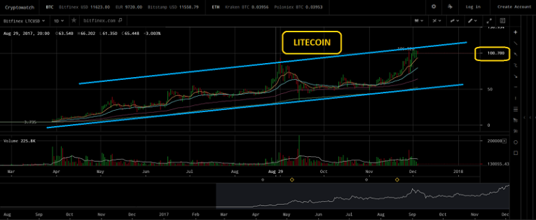 My long-term price target is two million US dollars per bitcoin. At www.gublockchain.com I analyse the main cryptos that are ready for serious upside action. A week ago, I highlighted key currency Litecoin at $100 for the gold community, issued a $1200 target, and showed potential subscribers a solid-looking chart.