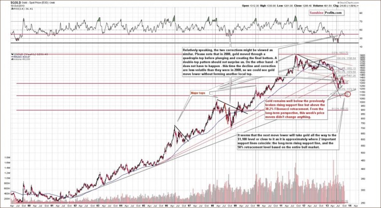 Having discussed the debt ceiling issue and its link to gold, let’s now move on to the more recent charts to find out what the current situation in the yellow metal is. Let’s start with a look at the long-term chart (charts courtesy by http://stockcharts.com).