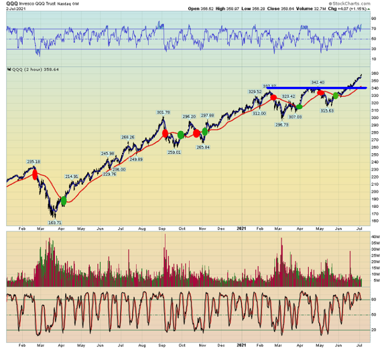 The fabulous space ETF chart. I plan to focus on the space industry with a third of my remaining stock market holdings and trade the short-term moving average signals on the Nasdaq “Q’s” with the rest.