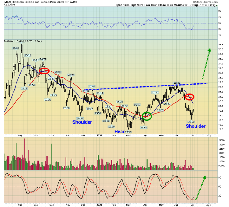 The daily GOAU chart. I’m not overly concerned about the sell signal on the key 20,50 moving averages. Here’s why: