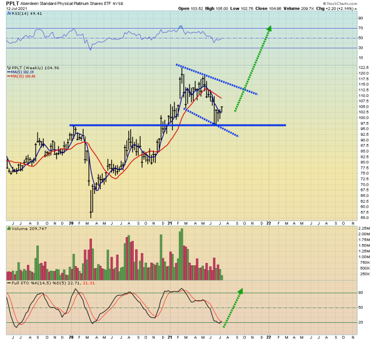 Note the spectacular buy signal in play now on the 14,5,5 series Stochastics oscillator. Clearly Palladium and platinum are two more “growflation” stalwarts for metal investors to consider as portfolio pillars.