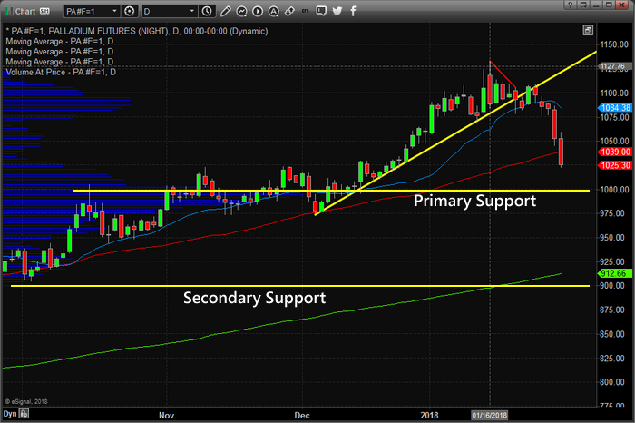 Just a few days ago we alerted our members and followers to a massive setup in the Palladium market that had not been seen in years. This chart formation provides an incredible opportunity for a trader to take advantage of and profit from the expected price decline. We alerted our members and followers on January 24th of this move.