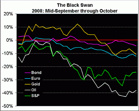 Gold just completed its ninth up week of the last 13, settling on Friday at 1332. But it did so on the week's ending down note, as afflicted all eight components of the BEGOS Markets complex (Bond, Euro/Swiss, Gold/Silver/Copper, Oil, S&P500).