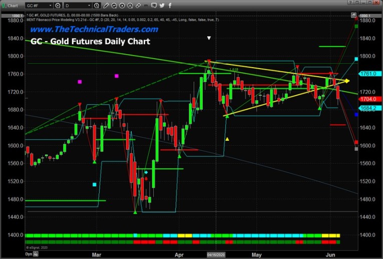 Gold and Silver moved lower early on June 2nd and 3rd. Our research team believes this is a “Washout Low” price rotation following a technical pattern that will prompt a much higher rally in precious metals. This type of washout price rotation is fairly common before very big moves after Pennant/Flag formations or just after reaching major price trigger levels.