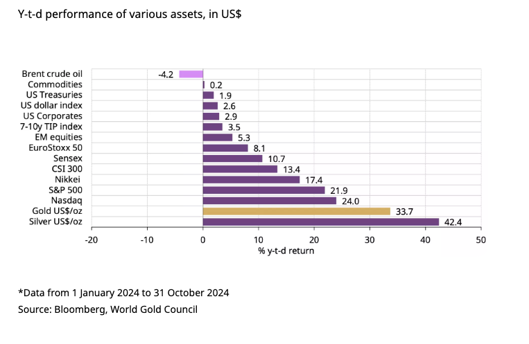 Gold and silver have been on a tremendous run in 2024. In fact, they are the two best-performing assets this year.