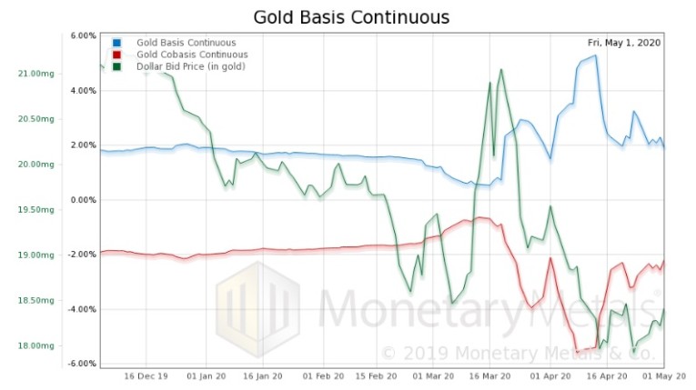 Below is a graph of the gold basis continuous (the June contract shows the same thing).