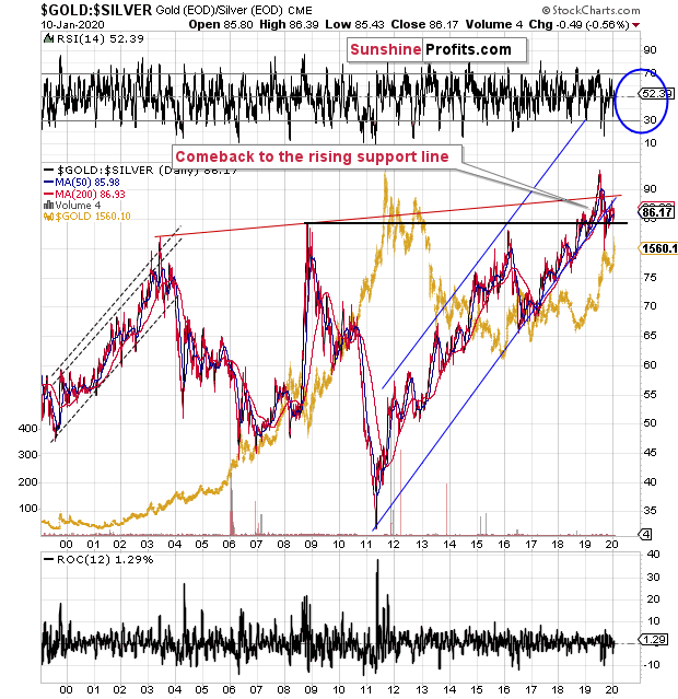 Besides, the true, long-term resistance in the gold to silver ratio is at about 100 level. This level was not yet reached, which means that as long as the trend remains intact (and it does remain intact), the 100 level will continue to be the likely target.