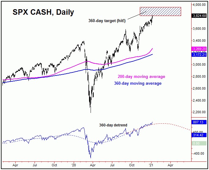 We have just recently released our 2021 Forecast issue for the U.S. stock market, which includes a detailed analysis of seasonality, the ‘presidential cycle’ and decennial patterns, the Bradley indicator for 2021 - as well as our major Time Cycle Forecast's projected path. These go into more detail on how we expect the U.S. stock market to play out for the year as a whole - which is setting up to be one for the record books, but with the usual twists and turns in-between. Stay tuned.