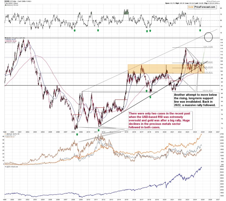 The only similar case is the 2020 breakdown and its invalidation that took place in early 2022. Back then, the USD Index continues to rally for about 15 index points. If the same happens again (note: I’m not writing about something completely new happening – I’m writing about the recent past being repeated), then the USD Index could rally to about 120 – it’s a critical, medium-term high.