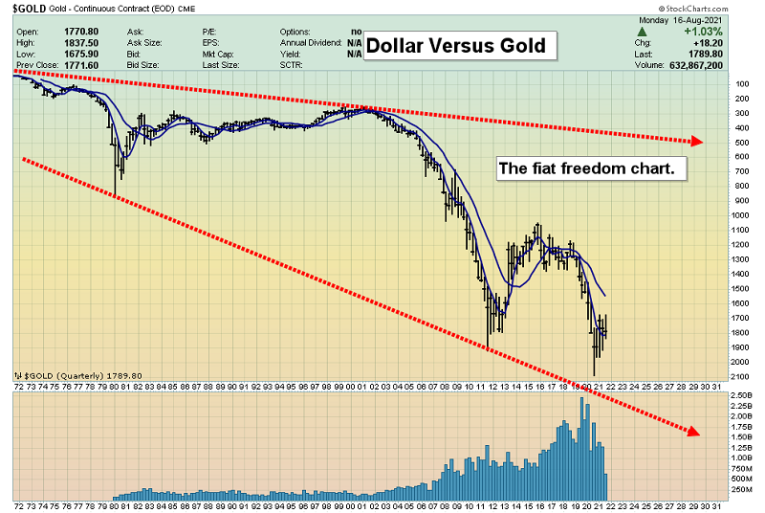 This US fiat versus gold chart essentially charts the loss of freedom for the nation. Until the fiat money system is put to death in America, citizen freedom will continue its relentless journey into the dumpster.