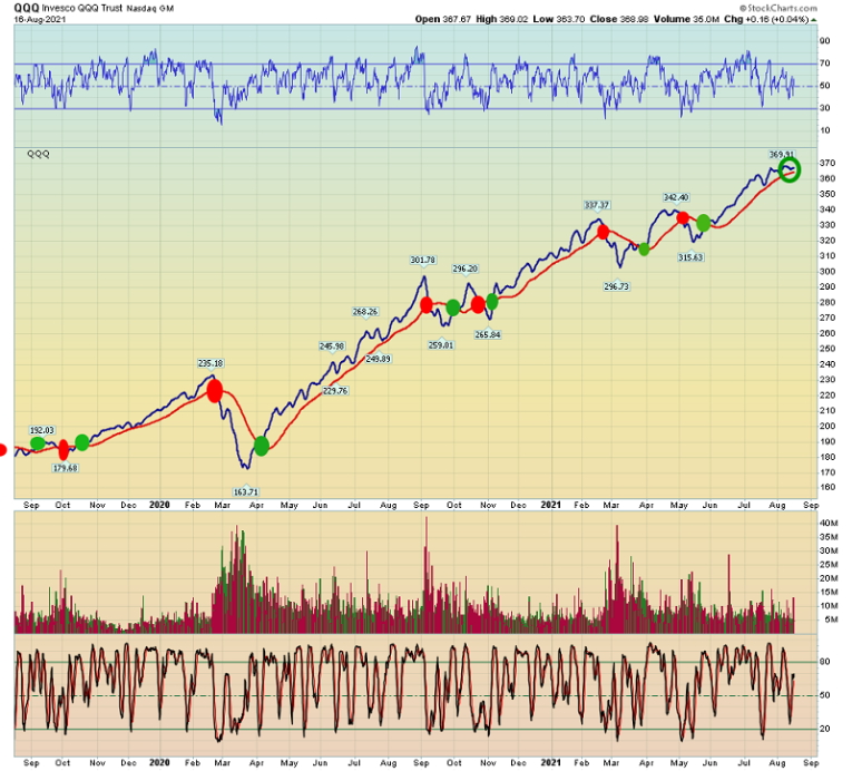I am short the stock market as of yesterday at my timing service newsletter, but until the QQQ moving averages flash a sell signal, there’s no cause for alarm.