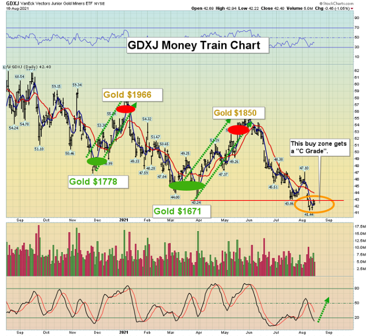 Special Offer For Gold-Eagle Readers: Please send me an Email to [email protected] and I’ll send you my free “Charts For Champions!” report. I highlight seven super junior miners trading under $5. A price of $1850 for gold could put these stocks into upside rocket mode! Key investor tactics are included for each mighty stock.